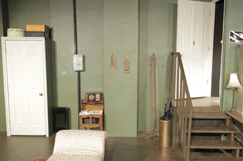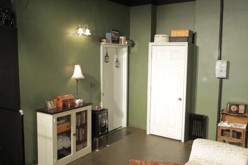 I used reclaimed materials and donated period props to create this basement apartment in Greenwich Village, NYC circa the 1940s.