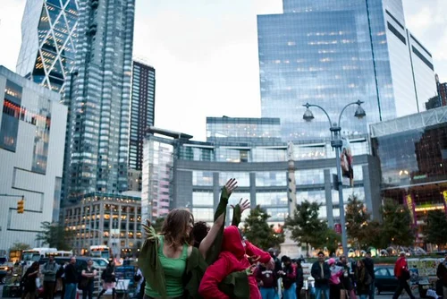 These were promotional street theatre performances for 9thirty Theatre Company. The assignment was to tell story though movement and song.