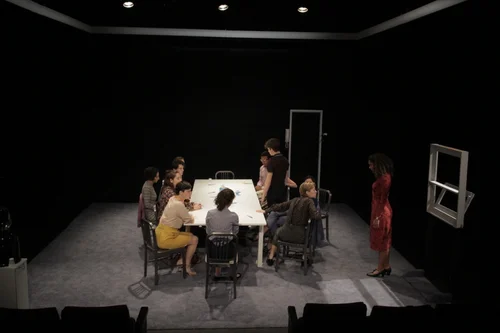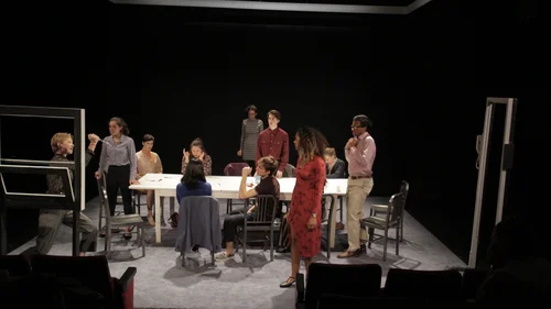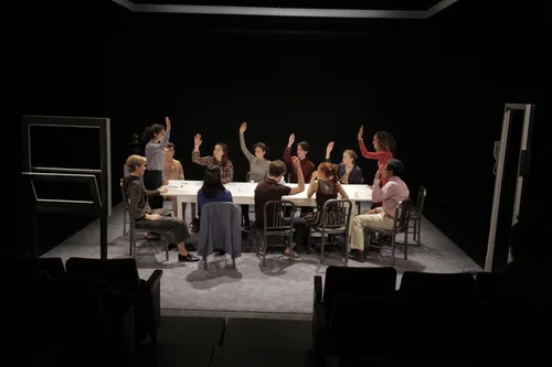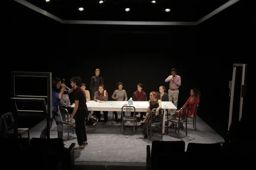 I designed the Set and Props. The challenge was to create a space that could rotate (shift perspectives) as Juror #8 flips the room from a guilty verdict to not guilty.